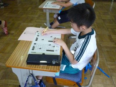 7月12日(木)朝、ステップの時間を使って、全校で視写プリントに取り組んでいます。本校は、国語についての研究を進めています。「視写」をすることで、文字への注意力、集中力、文章の読み取りの力の育成などを目指しています。書く姿勢や、正確に写すことを担任が声掛けしています。1年生の学級ととなかよし学級では、静寂の中、集中して取り組んでいる様子が見えました。