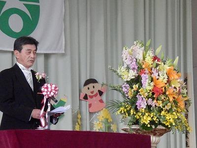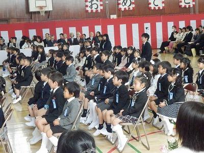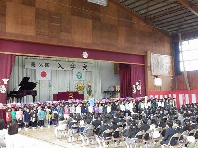 立野っ子の6年生が1年生の手を引き、入場しました。胸につけているペンダントにはアサガオの種が入っています。各学年の紹介と歓迎の言葉を聞く1年生の態度は立派でした。2年生から花のプレゼントが渡され、1年生からのお礼の言葉がありました。