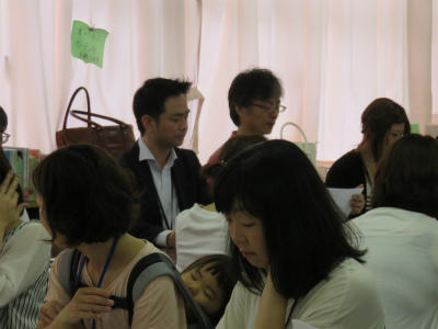 担任の岡安先生から、そめだしの綿棒が配布されます。興味津々です。