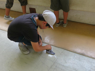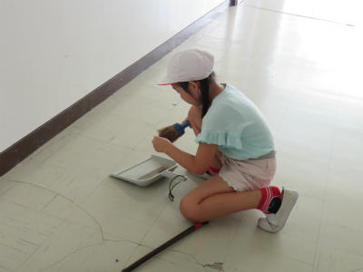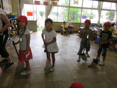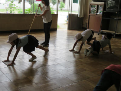 ほうきも一列で進みます。上手にゴミがとれるようになりました。