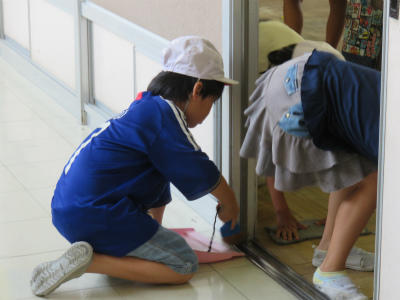 7月18日(火)そうじの時間の様子です。立野小学校では、「もくもく・てきぱき・すみずみ」を合言葉に、無言できびきびと細かいところまでしっかり掃除することを目指しています。おそうじ名人はたくさんいそうです。小さなゴミも逃しません。黒板はピカピカに。流しもクレンザーでよく磨きます。1年生も上手に掃除できるようになりました。6年生はさすがです。手際よく動いています。