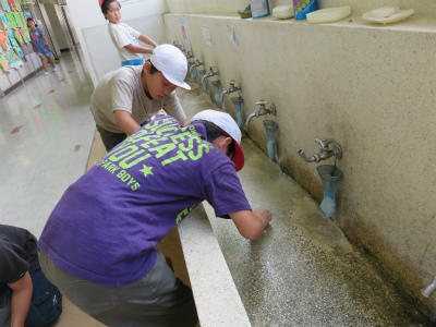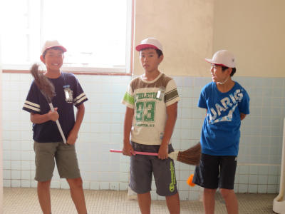 男子トイレの担当です。今日は、暑いので大変です。おかげさまでトイレはピカピカです。