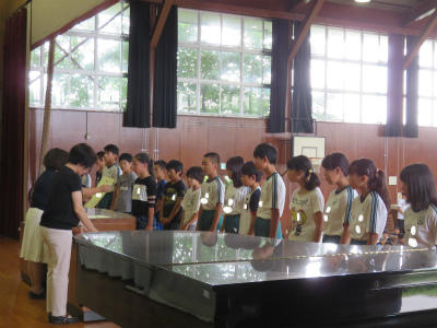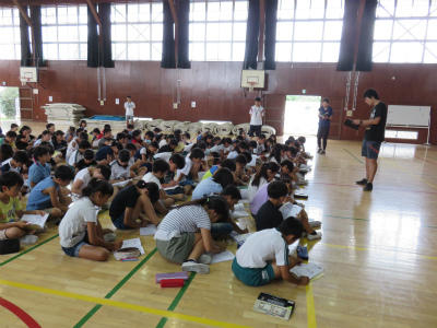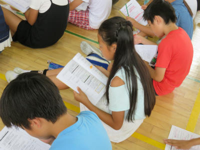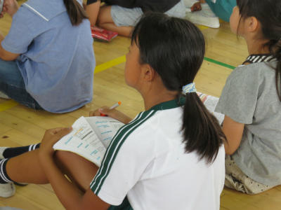 7月19日(水)5年生は林間学校に向けての最後の集会を行いました。山﨑先生から、3日間の最終確認についての話がありました。さすが5年生です。聞き逃さないように、一人一人がメモを取りながら確認していました。しおりには、すでに様々な書き込みがしてありました。読み込みもしっかりできているようです。林間学校は来週月曜日の出発です。成功をおさめましょう。