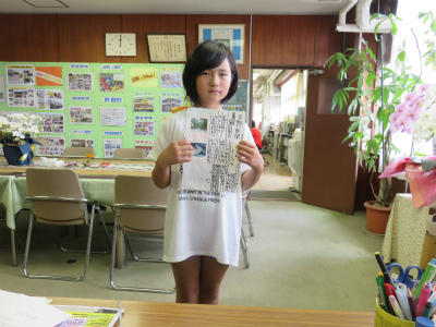 7月19日(水)なかよし3組のみなさんが、新聞が完成したと報告に来てくれました。以前、校長先生や教頭先生にインタビューしたこともしっかり記事として掲載されていました。工夫を凝らしてがんばりました。