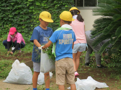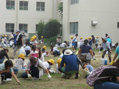 8月26日(土)「親子除草」が行われました。お忙しい中、保護者のみなさまには早朝よりご協力をいただきまして、ありがとうございました。今年は、280名を超す保護者のみなさまにご来校いただきました。