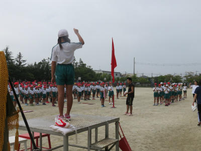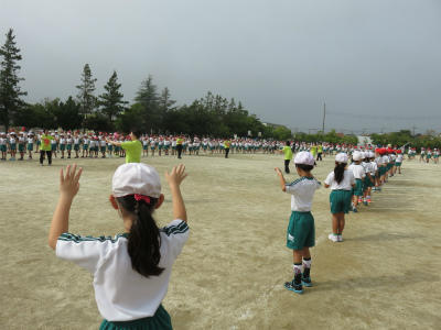 9月8日(金)朝、校庭において運動会全体練習が行われました。今日は、開会式入場、閉会式の練習を行いました。6年生の入場行進が大変立派にできました。1年生も元気よく練習に参加しています。また、各学年の表現発表についての練習も仕上げの時を迎えています。