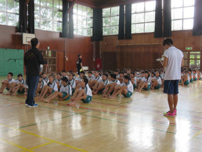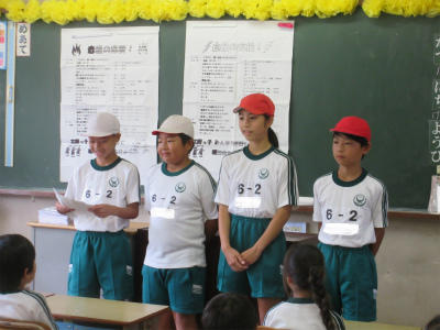 9月11日(月)紅白応援団のみなさんが、低学年の教室に出前練習に出向いてくれました。元気いっぱいの声が、廊下に響きました。本番の応援合戦が楽しみです。!!応援団のみなさん、よろしくお願いします。