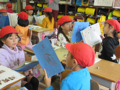 2校時は、国語「うみのかくれんぼ」です。今日は、説明文の学習です。たこの隠れかたについて、文章をよく読んで学びました。一生懸命に文章を読み取り、お友達と意見を交流しました。