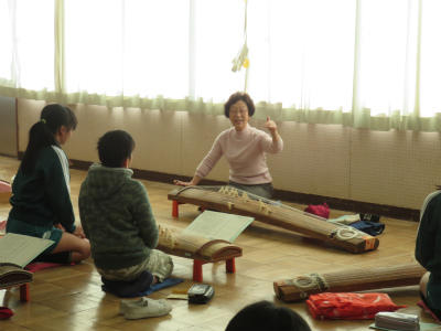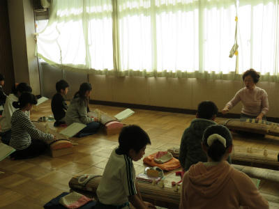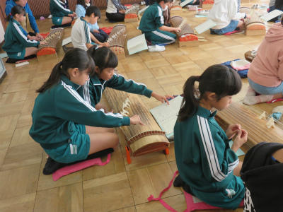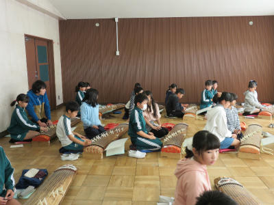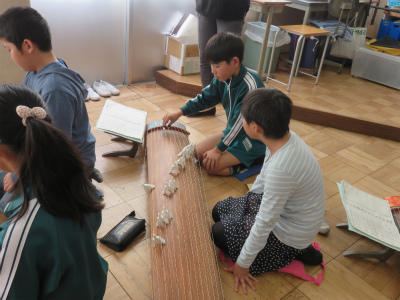 11月13日(月)2校時~4校時、音楽室にて「お箏教室」が開かれました。今日も宮西歌澄陽先生に御指導いただきました。「さくら」の音階が廊下に響き渡りました。5年1組は、前回に引き続き2回目のお箏教室となります。随分上達していて、びっくりしました。時々宮西先生にお声がけいただく姿勢も、ぴんと伸びてきました。御指導ありがとうございます。