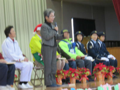 この集会は11月23日(木)「勤労感謝の日」にちなみ、日頃お世話になっている交通指導員さん、スクールガードリーダーの皆さん、おはなし会の皆様、調理員さん、校務員さんに感謝の気持ちを伝えようと実施されたものです。