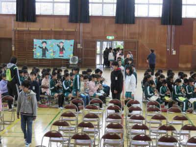 3月7日(水)朝、体育館において音楽朝会が行われました。学校では、卒業式に向けての練習も始まりました。6年生との時も残り少なくなっていることを感じます。