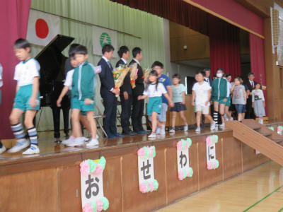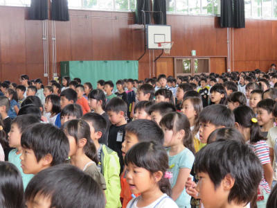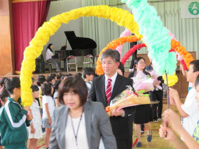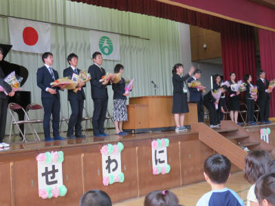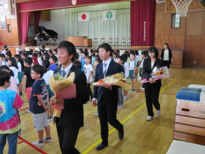 5月2日(水)13:40~、体育館において「離任式」が行われました。11名の先生方をお迎えして、懐かしさがこみ上げる式となりました。「会うは別れの始め」とも言いますが、出会いの数だけ別れがあります。子ども達も元気に返事をし、歌を歌い、成長した姿を離任した先生方に見ていただきました。先生方、お元気でご活躍ください。