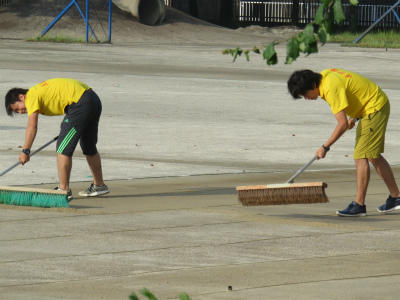 5月30日(水)明日は、いよいよ市内陸上大会です。今日は、高学年のみなさんに大きな力をなっていただきました。校庭の砂を丁寧に取り、掃き清めました。大会では、選手のみなさんがベストコンディションで競技に集中できるように、会場校としての心を表そうと話しました。黙々と一生懸命に校庭整備に励む姿に、立野っ子の心意気を見ました。(実は、このあと豪雨に見舞われてしまうというアクシデントがありました。)