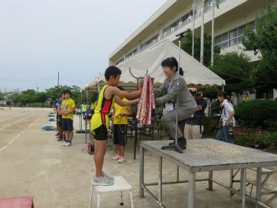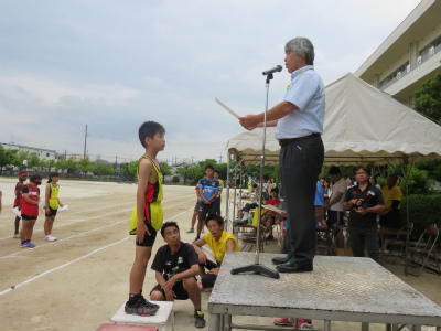 「勝つこと」だけにとらわれず、「自己の記録」を塗り替えること。「陸上を通して人間として成長すること」を先生方と子どもたちに語りかける毎日でした。辛い練習にもよく耐え、選手のみなさんは頑張りました。また、全校挙げての応援も見事でした。全員で勝ち取った勝利です。