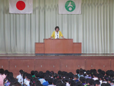 6月1日(金)朝、体育館において「プール開き」がありました。いよいよ水泳学習が始まります。校長からは「安全に学習すること」「目標をしっかり持つこと」の2点を話しました。気のゆるみが大きな事故につながることがあります。約束をしっかり守って、実りある水泳学習にしましょう。
