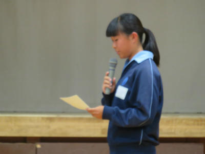 また、各学年の児童からそれぞれ「プール開きに寄せての決意」が述べられました。「クロールができるようになりたい」「ルールをしっかり守って学習したい」「先生の指導をしっかり受けて、去年の記録を上回りたい」など、具体的な目標を堂々と述べることができました。大変立派な態度でした。