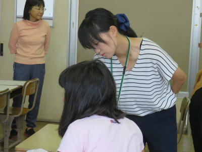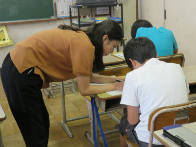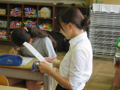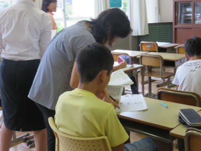 8月7日(火)ステップアップ教室が開かれました。今日は、朝から雨が降り、気温が低く、プール学習は中止となりました。ステップアップ教室には、元気に子どもたちが参加しました。今日も共栄大学の学生さんが3名、お手伝いに来てくれました。子どもたちの集中力も益々アップしています。よくがんばりました。