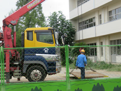 8月20日(月)いよいよプール改修工事が始まりました。当面の間、北門からの出入りができなくなります。また、中庭の一部が職員の駐車場となります。ご不便をおかけします。また、工事車両等も出入りします。御来校の際は、十分にお気を付け下さい。