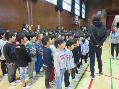 12月13日(木)朝、校庭において元気タイムを行いました。今日は、長縄の練習です。各クラスから2チーム出場しての「校内なわとび大会」が実施されます。今年は、1月31日(木)、2月7日(木)です。昼休みにも練習をしている成果が表れています。立野っ子は、今日も元気一杯です。応援してください。