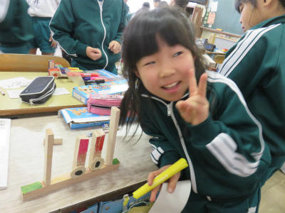 12月13日(木)2校時、3年1組が図工の授業で「のこぎりひいてザク・ザク・ザク」の作品が完成しました。「うさぎ」「白馬」「ピストル」「小物入れ」「飛行機」・・・。上手にできました。みんなの豊かな発想に感動しました。大人になると、この感性をどこかに置き忘れてしまうのでしょうかね。この年齢ならではの作品です。
