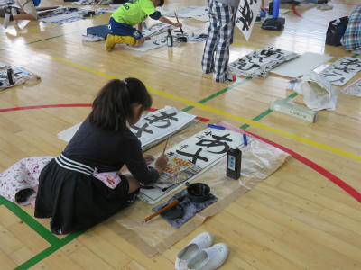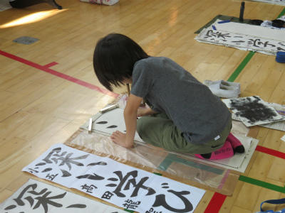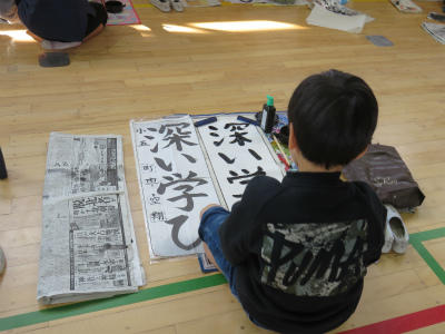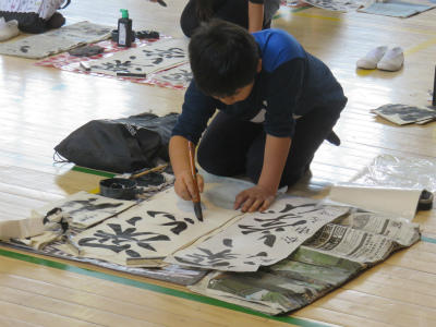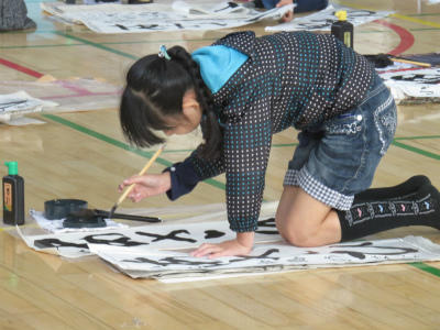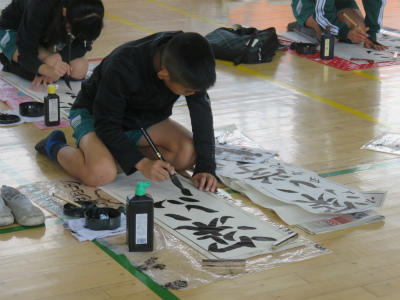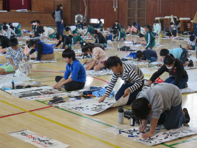 12月4日(火)1校時~4校時、体育館において「校内競書会」が開催されました。今日は、3年生と5年生の部です。落ち着いて、一生懸命に、丁寧に筆を走らせています。伸び伸びとした字には、みんなの思いが込められているようです。また、5年生の競書会では、場の空気がピーンと張りつめているような気さえしました。静寂の中、ひたすら筆を進めたことと思います。とてもいい墨の香りがしました。