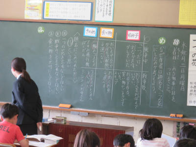 文教大学から教育実習に来ている4名の実習生が授業を行いました。大学からも先生が来校され、御指導をいただきました。