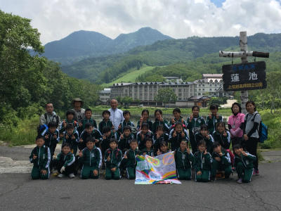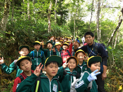 このあとは、志賀高原の自然についてビデオ鑑賞をし、ハイキングを再開します。その後は、琵琶池を目指します。あと少し!5年生、頑張れ!!