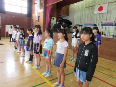 7月10日(水)朝、体育館において「7月の音楽朝会」がありました。今月の歌は、「勇気100パーセント」です。元気に歌いました。音楽委員のみなさん、ありがとうございました。