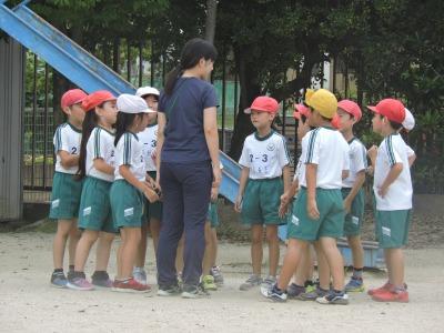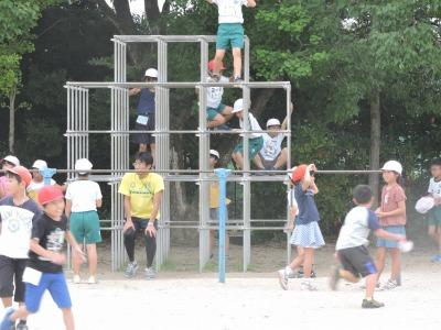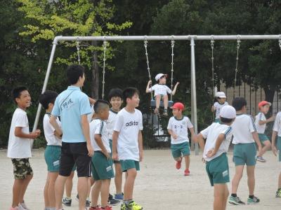 9月4日(水)昼休み、先生と子どもたちが校庭で遊んでいます。職員室に「先生ー。」と呼びにくる様子も見られます。授業の時とはまた違った雰囲気です。子どもたちも笑顔でいっぱいです。先生の顔もいつもと違うようです。
