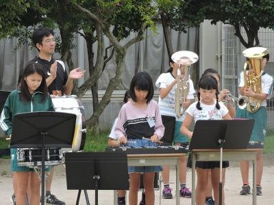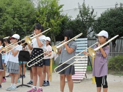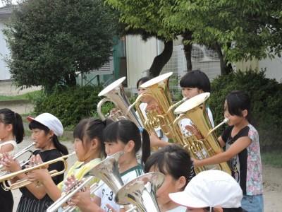 9月4日(水)、校庭において先導プラカード(6年生)、金管クラブ、バトンクラブの運動会練習が行われています。開会式での花形。夏休み中の練習の成果もばっちりです。先生と子どもたちが一緒に練習に励むから、実りある本番が訪れるのですね。何だか胸が熱くなります。運動会が楽しみです。