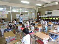 分散登校7日目の様子です。立野っ子のみなさんが元気に学習しています。明日から分散登校は1日交代になります。登校するグループは、給食が始まりますので、自分のエプロンと三角巾、箸・スプーンをご用意ください。また、一斉下校の時刻は、15:00時になります。よろしくお願いします。