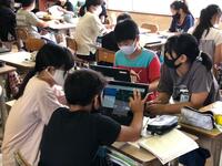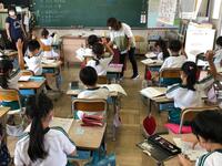 きょうも元気いっぱい活動している立野っ子のみなさんです。朝の体力づくりの元気タイムでは、2年生と5年生が短距離走の練習をしています。いろいろな授業では、パソコンを使ってグループ学習をしたり、空中で鍵盤の指遣いを練習したり、ソーシャルディスタンスの水泳学習をしたり、体育でラグビーボールを使ったり、英会話の練習に取り組んだり、算数や図工に熱心に取り組んだりしています。給食の時間は1年生の給食当番がとてもよく配膳しています。1年生から6年生まで立野っ子のみなさんはとてもよく活動していてすばらしいです。