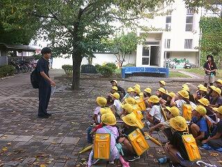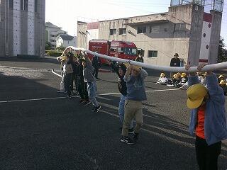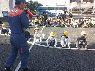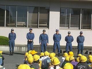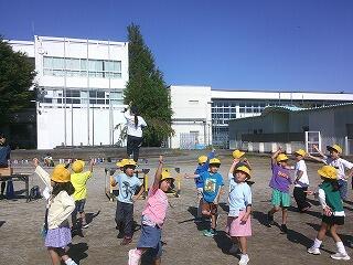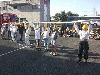 火災を想定した避難訓練を行いました。こどもたちは先生の指示をよく聞き、落ち着いて行動していました。