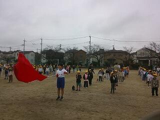 校庭に集まった後も、点呼を静かに受ける姿がとても立派でした。