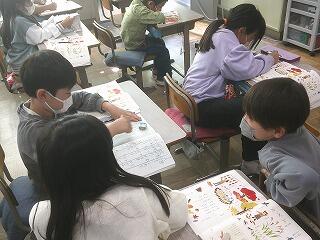 3年生は国語「ちいちゃんのかげおくり」を学習しています。場面ごとにちいちゃんや家族の気持ちを考え、登場人物の思いに寄り添って読みました。楽しかった場面や悲しい場面を通して、平和や家族の大切さについて感じ取ることができました。
