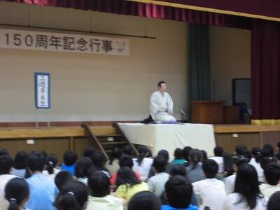 豊春小学校創立150周年を記念して、落語家の三遊亭楽生さんにお越しいただき、落語を聴きました。