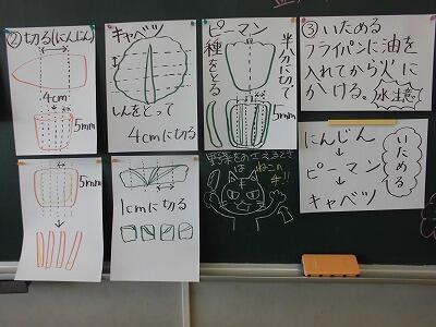 黒板にあるとおり、野菜を細かく切ることができていました。