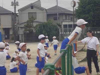 担任が、「手を前につくよ。」「こしをあげるよ。」などのポイントを指導し、