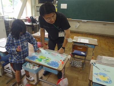 バルーン教室では、風船を使ってハチを作りました。また、レジン教室では、アクセサリーを作りました。子どもたちは、よい作品を作ろうと、作業に集中していました。作品ができあがると、「見て。」「見て。」とうれしそうに満面の笑みを浮かべていました。