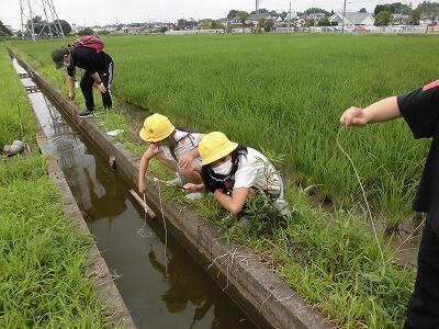 2年生が、ザリガニつりに行きました。