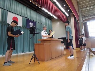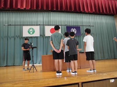 体育館からリモートで全校集会を行いました。