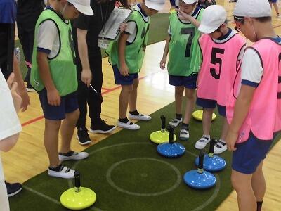 市内小・中・義務教育学校の体育主任が3年生の体育の授業を参観し、研究協議を行いました。