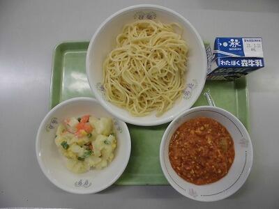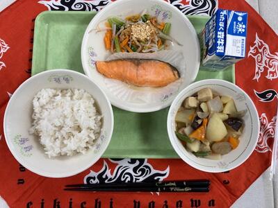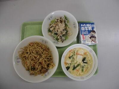 6月8日(木)本日の給食 きなこ和えは、笑顔になります。