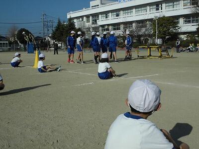 【体育朝会2・4・5年】長縄8の字跳びを行いました。朝の寒さも和らいできました。