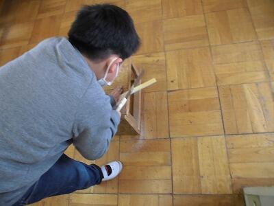 【4年生 図工】丁寧に釘打ちをして作品を完成させました。