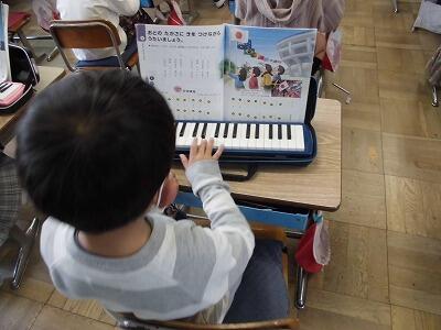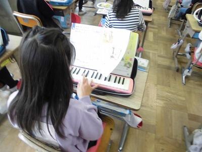 【1年生 音楽】鍵盤ハーモニカで、上手にこいぬのマーチを演奏できるようになりました。