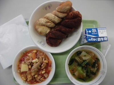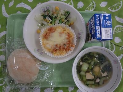 6月5日(月)本日の給食(コンソメスープは具だくさんでいろいろな味を楽しめました)