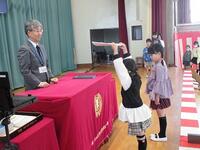 【5・6年生 卒業式予行】本番の卒業式に参加することができない5年生が予行に参加し、卒業生の退場を「威風