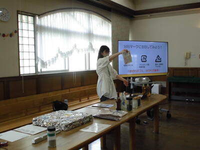 子供たちが、家庭ゴミの分別にチャレンジしていました。