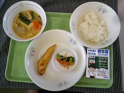 4月16日(火) 具がたっぷりのみそけんちん汁、1年生も大満足
